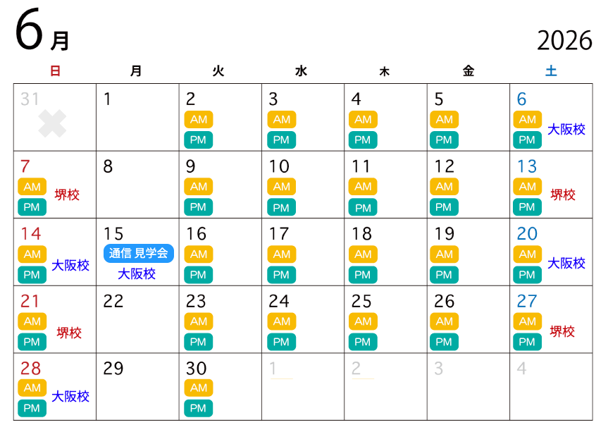 ※夏・春・冬の長期休み期間は授業見学はございません。