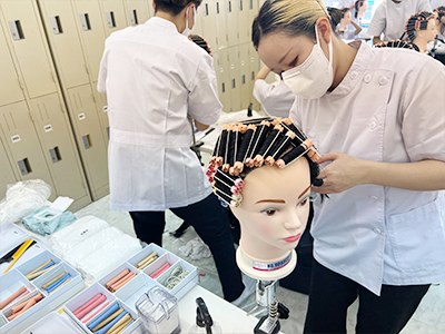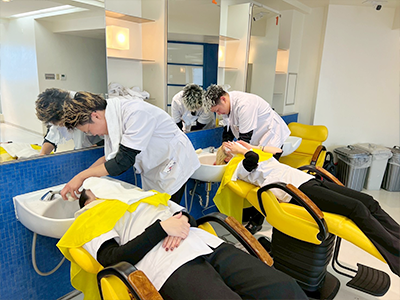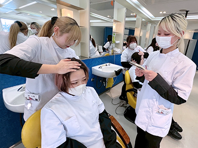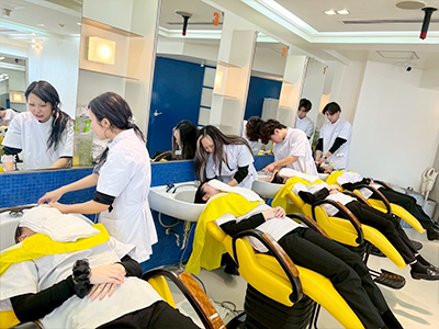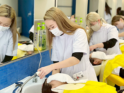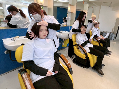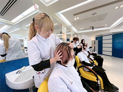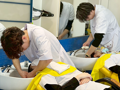 シャンプーは入学当初から学んでいるので、かなり上達しています!