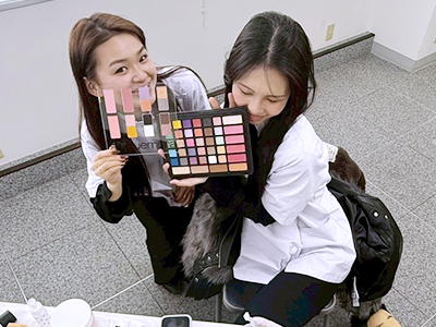 新しいメイク道具を使って楽しそうです