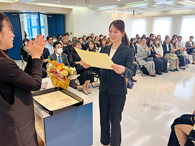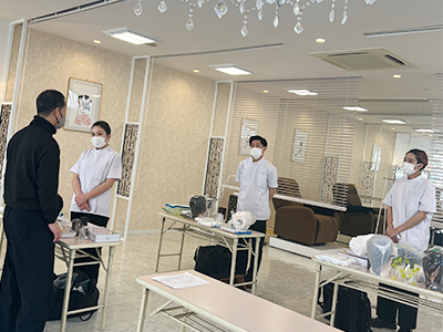 お客様へのタッチの仕方やお客様との距離・立ち位置、姿勢なども学びました☆