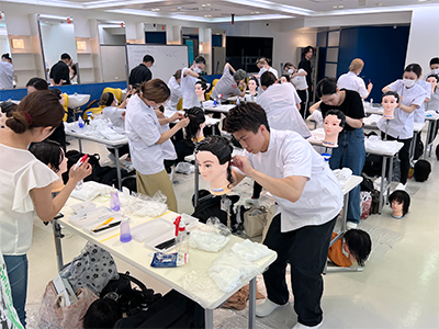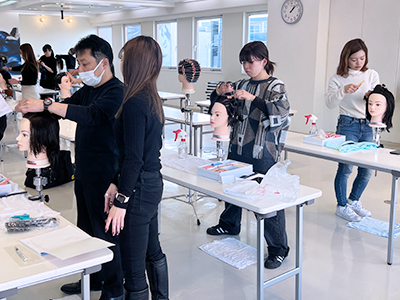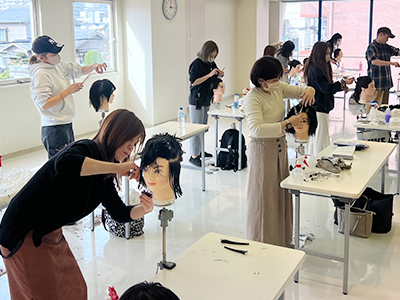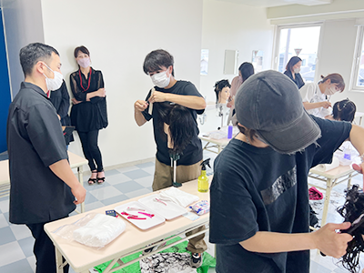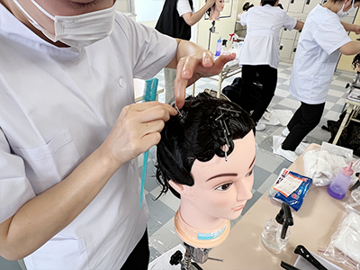 オールウェーブセンディングと、カットが課題となりましたが、今日は皆さんオールウェーブセッティングの練習をしていました!