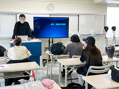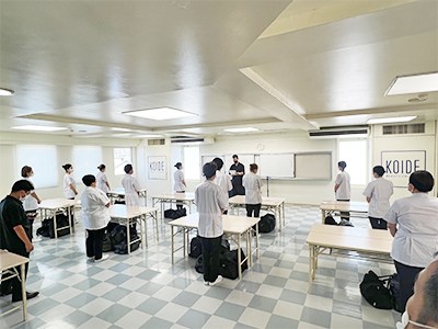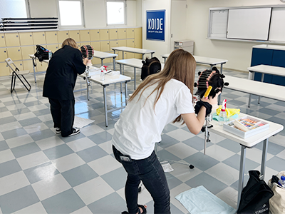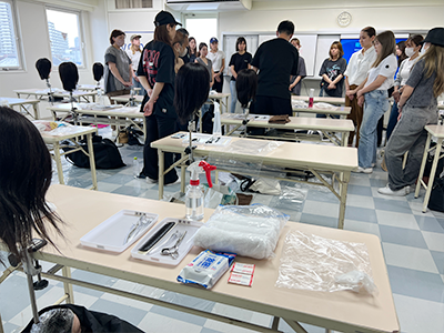 実技試験では、道具類を衛生的に使用しているか、準備物に不備がないかなどの試験も含まれるので、今日はその対策授業を行いました。