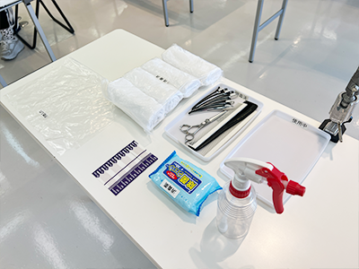道具を出す順番が決まっていたり、どのタイミングで手指消毒をするのか、片付けはどのようにするのか、道具を床に落としてしまった時の対処の仕方などなど、覚えることがたくさん(汗)