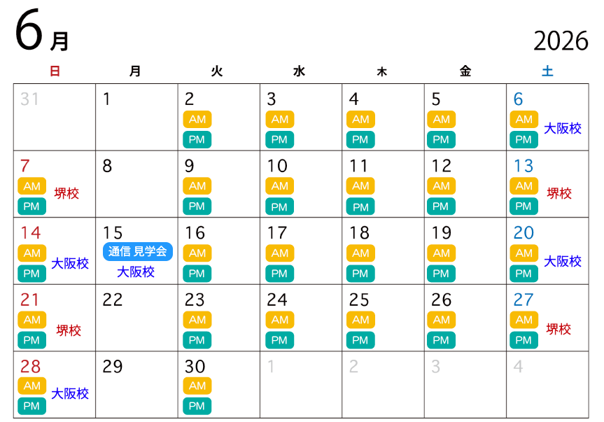 ※夏・春・冬の長期休み期間は授業見学はございません。