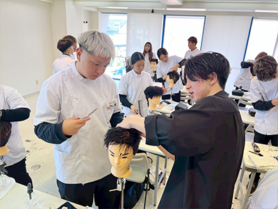 実践重視のカリキュラムが人気の小出美容専門学校です v^^v