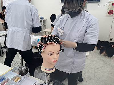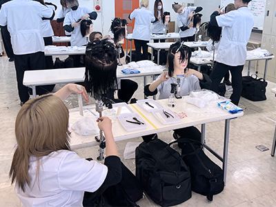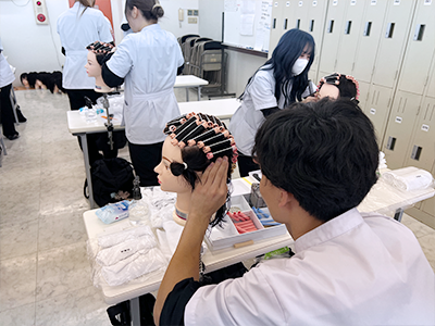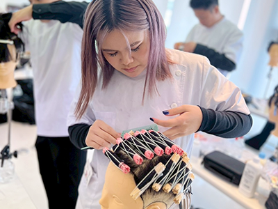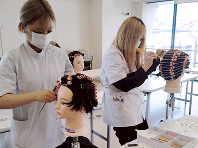 セット授業で行われた、モデルヘアセット自由創作の作品で