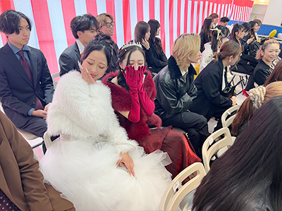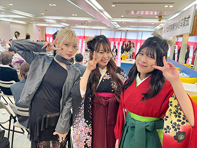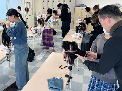 ブロー仕上げを本校の在校生にも助けてもらいながら