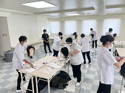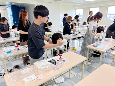 実技試験では、道具類を衛生的に使用しているか、準備物に不備がないかなどの試験も含まれるので、今日はその対策授業を行いました。