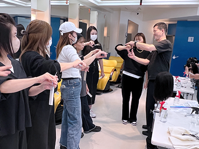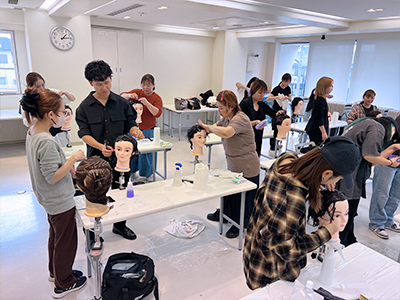 オールウェーブセンディングと、カットが課題となりましたが、今日は皆さんオールウェーブセッティングの練習をしていました!